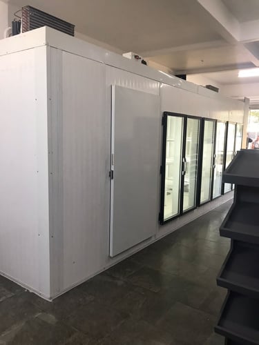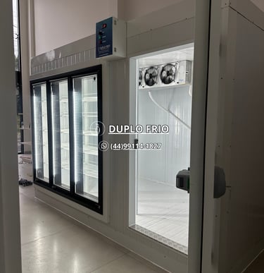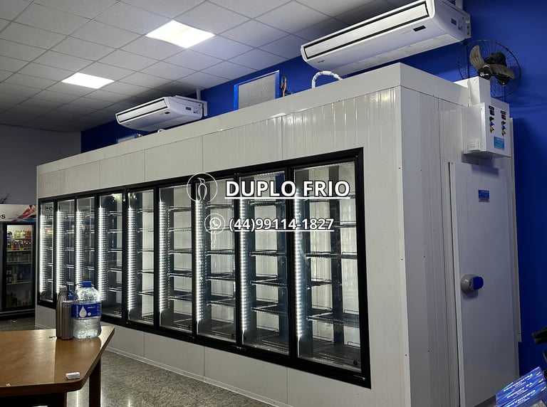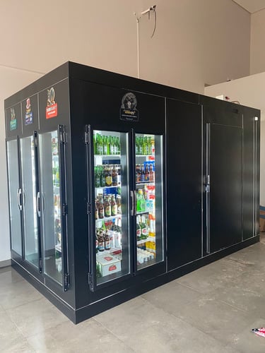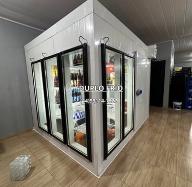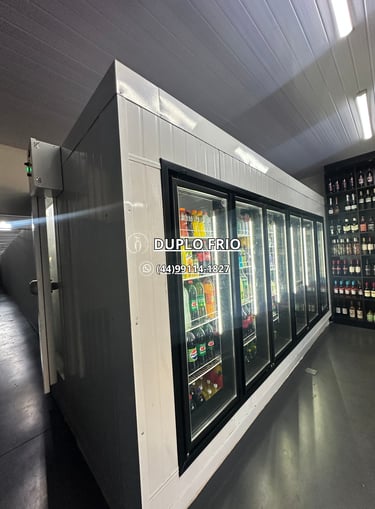 Feita sob-medida ela é ideal para lojas de conveniências, padarias, supermercados, autopostos a Câmara Walk-in Cooler permite a exposição de produtos, e estoque em um único equipamento, num único espaço, assim sendo o abastecimento e estoque por atrás das prateleiras.