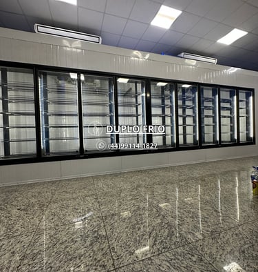 As portas são de vidro duplo,antiembaçante com o quadro preto causando elegância e melhor visibilidade. As Câmaras frias Walk-in cooler, proporcionam um aproveitamento melhor de espaço, além de praticidade no abastecimento e controle de estoque.